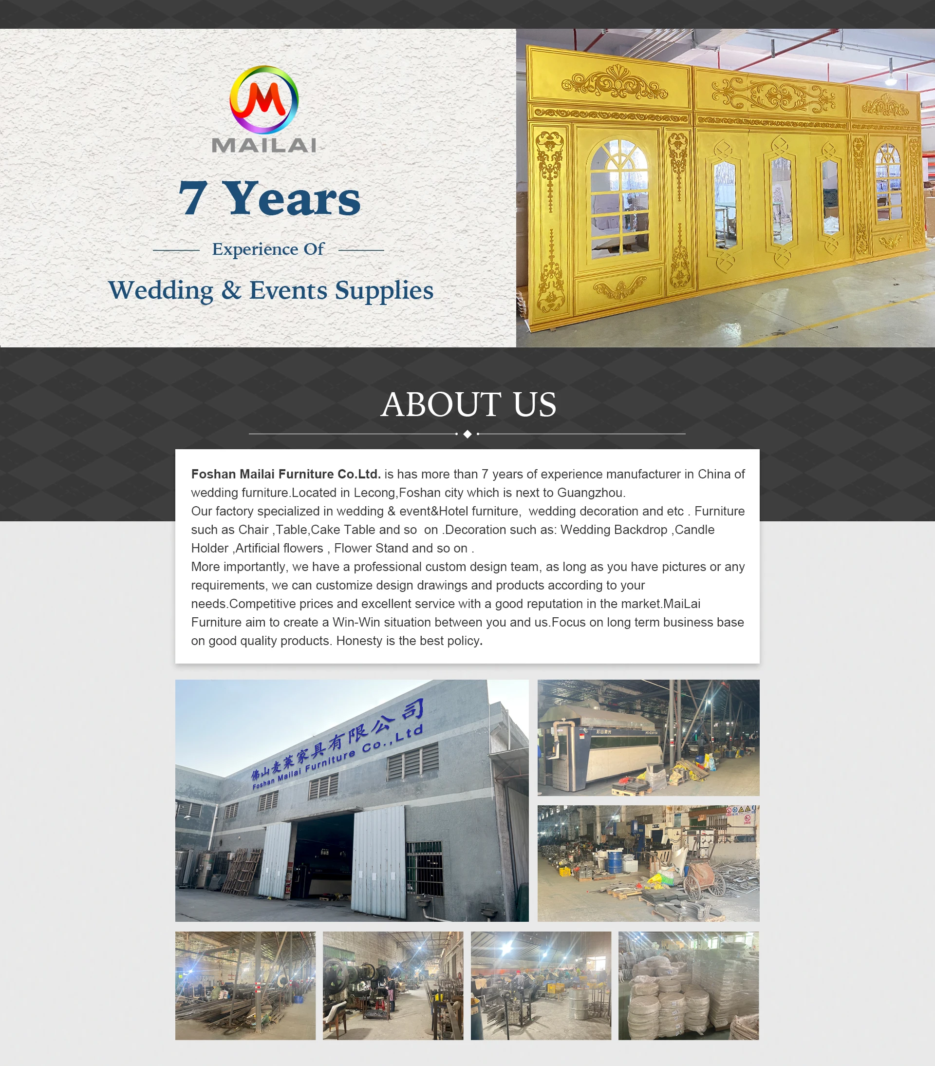 Productos principales:Silla de boda, mesa de boda, telón de fondo de boda, textil, vajilla